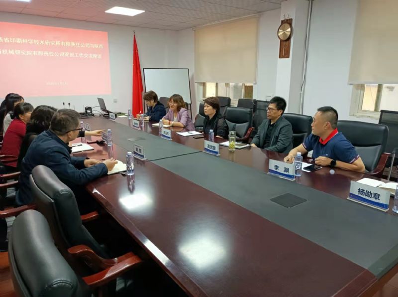 陜西省印刷科學(xué)技術(shù)研究所有限公司科技發(fā)展部部長王利,陜西機械行業(yè)生產(chǎn)力促進(jìn)中心副總經(jīng)理高優(yōu)靜、李淵及雙方相關(guān)部門負(fù)責(zé)同志參加了本次交流座談。
